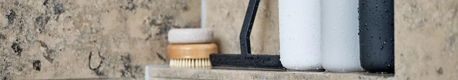 En duschskrapa är oftast tillverkad i plast och silikon för att tåla vatten och smuts. Silikonremsan längst ned gör att den formar sig perfekt eftergolvet och samlar upp allt vatten. Den är enkel att rengöra så att du slipper byta ut den allt för ofta. Detta lilla verktyg är praktiskt och smidigt så att du enkelt kan gömma undan den när den inte används. De flesta duschskraporna kommer med ett hänge eller en hållare så att du alltid har koll på vart den finns. Zone Denmarkduschskrapa kommer med en medföljande hållare som du kan fästa på väggen. Kommer i färgerna grå och svart. Norm duschskrapa från Audo Copenhagenär tillverkad i rostfritt stål och har istället ett hänge i form av en ögla. Den går att hänga på exempelvis en handdukshållare eller duschhylla i duschen.