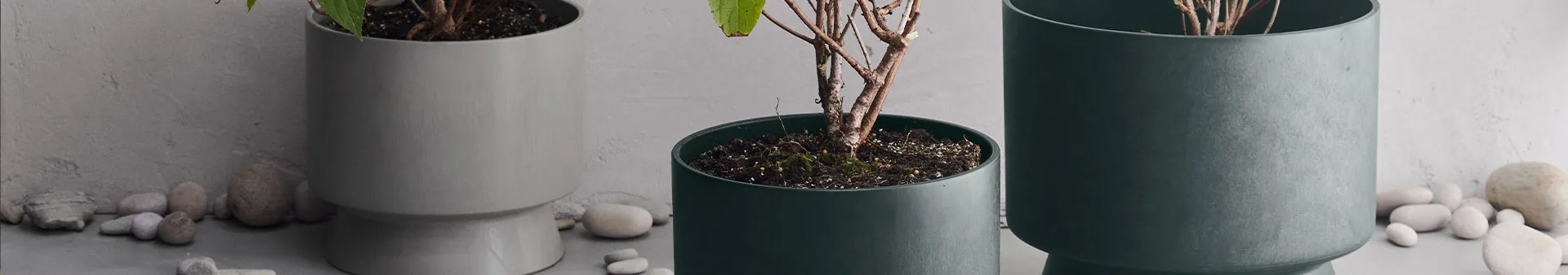 Aluminium – Det är ett lätt material som fungerar lika bra inomhus som i utomhusmiljöer. Perfekt för dig som har en växt som behöver flyttas efter årstiderna. Kolla in krukorna från Byarums Bruk och SMD Design.