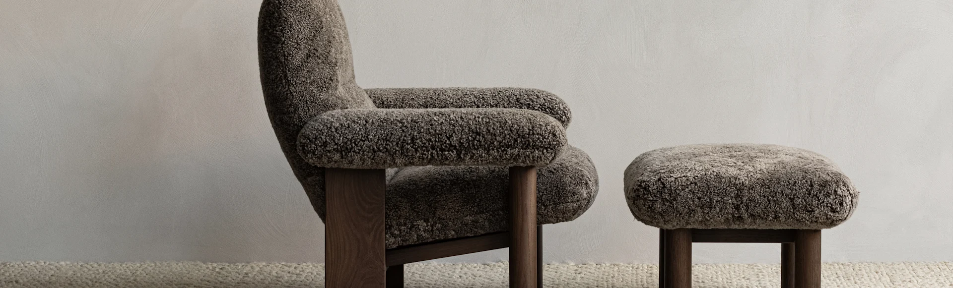 Swedese tillverkar nordiska trä fåtöljer med fårskinn. Det är en tidlös design där de har kombinerat naturens material med ett fantastiskt hantverk. Till dessa finns tillhörande fotpallar för att skapa den kompletta sittplatsen.