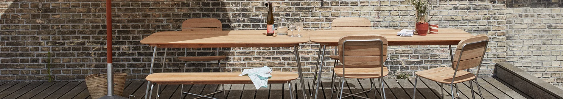 Hos oss kan du hitta många olika matbord - möbeln som fungerar som umgängets mittpunkt och samlar alla dina kära. Vi har många sorters matbord för utomhusbruk i vår noggrant utplockade kollektion. I vårt stora utbud hittar du produkter från Fermob, Skagerak och Cane-line, med fler. De kombinerar lätt komfort, design och kvalité och har en självklar plats i din trädgård eller på uteplatsen. Vi har bord som ger en hemtrevlig känsla och gör att du vill spendera många timmar i goda vänners lag. Varför inte bjuda in grannarna till en grillfest och duka upp en riktig sommarmiddag?