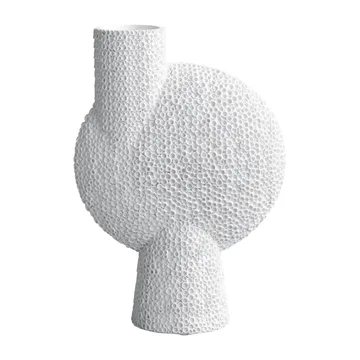 Sphere vas Bubl Shisen big 44 cm från 101 Copenhagen är ett skulpturalt objekt där hantverk, tradition och form möts i en perfekt avvägd balans. Den rundade siluetten med sin upphöjda hals bär en yta av hundratals små cirklar som gradvis övergår i ett taktilt mönster – en levande struktur som fångar ljus och skugga i ständig rörelse. Som en del av 101 Copenhagens signaturkollektion Sphere är vasen framtagen i nära samarbete med skickliga keramiker för att uppnå den exakta kontrasten mellan mjuka former och tydliga konturer. Inspirationen hämtas från antika kinesiska vaser och japansk estetik, där ordet Shisen betyder nät eller sättet att se världen. Varje exemplar är handglaserat och unikt, med små variationer som ger karaktär och djup. Invändigt är vasen lackerad för att tåla vatten, men den är inte helt vattentät – använd gärna medföljande insats vid färska blommor. Sphere vas Bubl Shisen big 44 cm från 101 Copenhagen bär en poetisk enkelhet och skulptural styrka – ett konstverk i keramik att leva med länge.