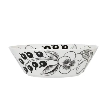 Paratiisi skål från finska Arabia är en dekorativ skål formgiven av Birger Kaipiainen. Skålens enkla form och rika mönster gör den passande både som en salladsskål till lunchen och som en serveringsskål för snacks eller annat gott till festligare sammanhang. Kombinera gärna denna skål med andra delar ur Paratiisi-serien för att skapa en fin enhetlig dukning.