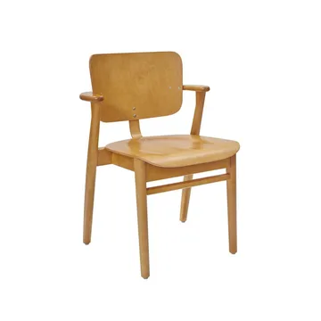 Domus stol från Artek är en klassisk och ergonomisk stol formgiven av Ilmari Tapiovaara 1946, och en ikon inom finsk möbeldesign. Stolens korta armstöd gör att den enkelt kan placeras nära bordet, medan det tredimensionellt böjda sätet och de rena linjerna ger både komfort och stil. Domus stol är mångsidig och passar lika bra vid matbordet, skrivbordet eller i hemmets olika rum, och uppskattas även i offentliga miljöer. Med sin tidlösa estetik, funktionella design och höga kvalitet har stolen blivit en av de mest uppskattade klassikerna inom modern finsk möbeldesign.