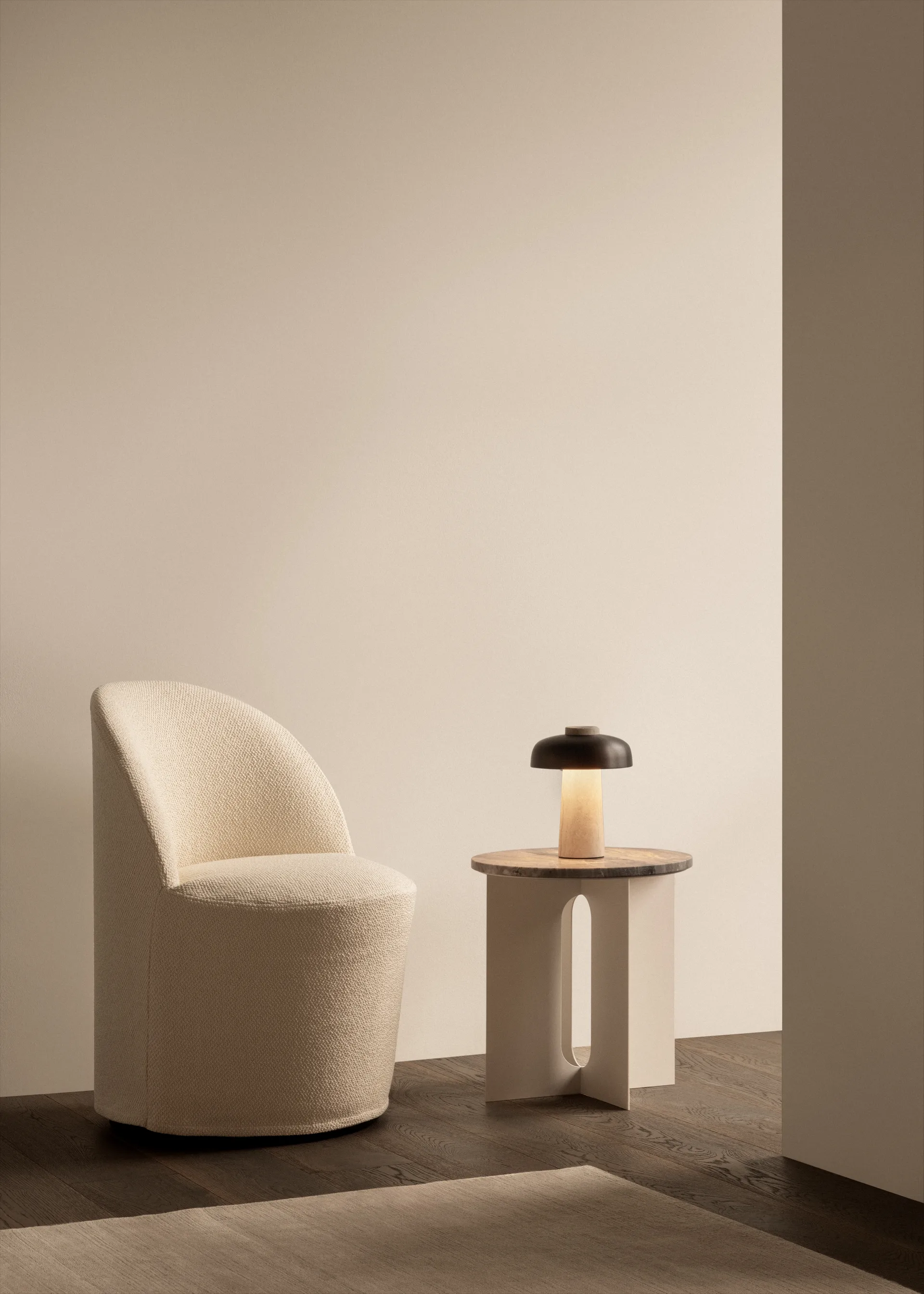 Bordsskiva av robust marmor till det stilrena och minimalistiska sidobordet Androgyne från det danska designhuset Audo Copenhagen. Bordets design skapades med fokus på en vacker och spännande siluett som kombinerar maskulin och feminin styrka, därav namnet Androgyne. Designen är både funktionell och flexibel vilket gör att det passar att använda både som nattduksbord, soffbord eller sidobord. Kommer i flertalet färger, bordskiva och ben säljs var för sig.