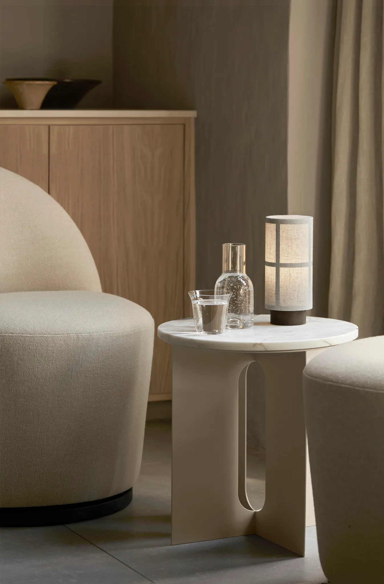 Androgyne sidobord från Audo Copenhagen, designat av Danielle Siggerud, är ett magnifikt tillskott till hemmet. Med sin kombination av naturliga material erbjuder bordet en slående estetik som smälter in i de flesta utrymmen. Perfekt för användning i både vardagsrum och arbetsrum, detta bord är en tidlös möbel som levererar både funktion och elegans.