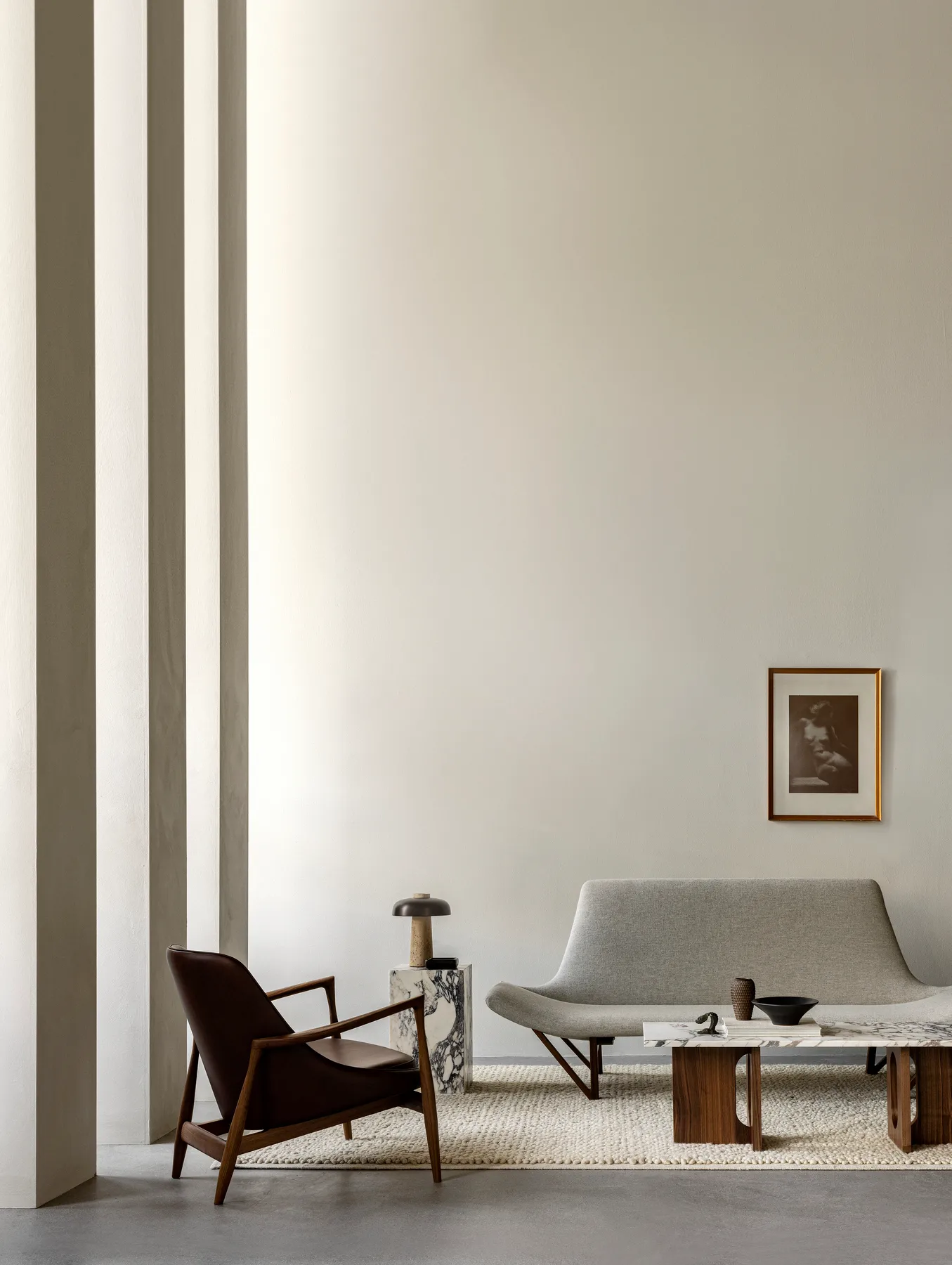 Reverse bordslampa 30 cm från Audo Copenhagen har en rundad skärm i metall och en fot i obearbetad natursten med en form som påminner om en kon. Tack vare fotens råa material uppkommer effektfulla skuggor då lampan är tänd. Dessutom framträder stenens olika färgskiftningar på ett fascinerande sätt. Där foten och skärmen möts upptill sitter en dimmer som gör att du kan justera ljusintensitet och färgtemperatur på en och samma gång, vilket gör att lampan uppfyller många olika belysningsbehov – allt från ett varmt ljus på nattduksbordet till ett dämpat ljus på byrån.