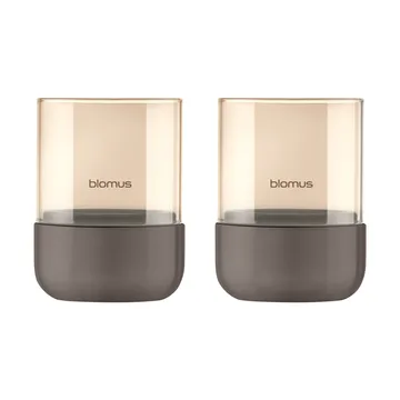 Calma ljuslykta Ø7 cm 2-pack från tyska blomus är ett set om två små stormlyktor med en cylinderformad glasdel på en bas i betong. Spegeleffekten på insidan av glaset multiplicerar bilden av lågan på ett effektfullt sätt. Placera Calma på bordet eller i fönstret för en mysig stämning.