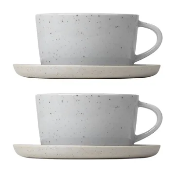 Sablo tekopp med fat 25 cl 2-pack från tyska blomus är en kopp tillverkad i stengods som som formats i höga temperaturer vilket ger koppen en hög hållbarhet. Servisen är delvis glaserad och designen påminner om vatten som flödar över sand, vilket är element som formgivaren Frederike Martens hämtat sin inspiration från. Njut av en varm kopp te med handgjord kvalitativ känsla.