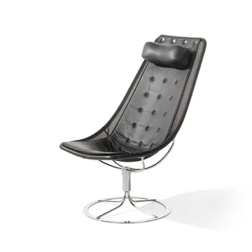 Jetson 66 lång dyna fåtölj från Bruno Mathsson International är en tidlös designklassiker från 1965, inspirerad av rymdålderns futuristiska estetik. Med sin ikoniska sitskorg av stålrör och bärande nät eller väv, kombinerar den lätthet och styrka. Det förkromade underredet i massivt specialstål ger både elegans och hållbarhet. Fåtöljen är vridbar och utrustad med en smidig återgångsmekanism, vilket gör den både bekväm och funktionell – en perfekt balans mellan form och funktion för moderna hem.