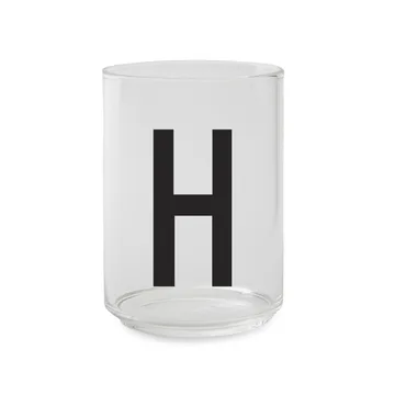 Design Letters glas har dekorerats med Arne Jacobsens klassiska typografi och nu blir det enklare att hålla reda på vilket dricksglas som tillhör vem i familjen! Dricksglaset är tillverkat i borosilikatglas och har alla bokstäver mellan A-Z tryckt på framsidan i svart. Glaset blir på så sätt en personlig detalj i köket eller på skrivbordet som en stilren pennhållare! Kombinera gärna dricksglaset med Design Letters melaminkoppar för en stilren look till frukost och fika.