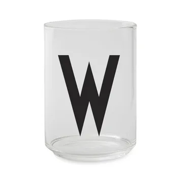 Design Letters glas har dekorerats med Arne Jacobsens klassiska typografi och nu blir det enklare att hålla reda på vilket dricksglas som tillhör vem i familjen! Dricksglaset är tillverkat i borosilikatglas och har alla bokstäver mellan A-Z tryckt på framsidan i svart. Glaset blir på så sätt en personlig detalj i köket eller på skrivbordet som en stilren pennhållare! Kombinera gärna dricksglaset med Design Letters melaminkoppar för en stilren look till frukost och fika.