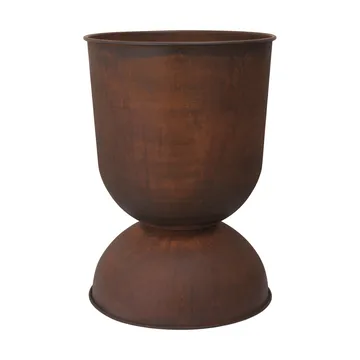 Hourglass kruka stor Ø50 cm från Ferm Living har en ytbehandling som gör den lämplig för både inomhus- och utomhusbruk. Krukan har en skulptural, upphöjd form som lyfter växter och små träd till ett tydligt blickfång på golv, terrass eller balkong. Den vändbara designen gör det möjligt att anpassa höjd och uttryck efter växtens behov. Ett dräneringshål med gummipropp finns i båda riktningar för flexibel plantering. En stilren och hållbar blomkruka som utvecklar vacker patina över tid.