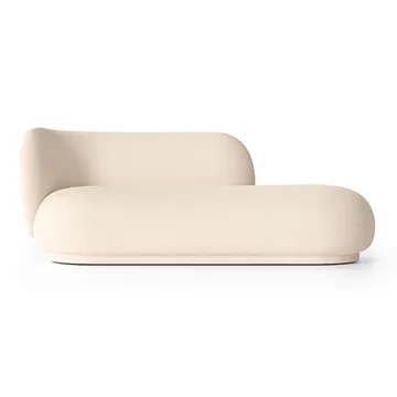 Rico schäslong bouclé vänster från Ferm Living är en fristående loungemöbel med fast sittkomfort och en omfamnande, skulptural rygg. Den generöst formade schäslongen är klädd i ett bouclétyg med grov, taktil struktur som ger djup och karaktär åt designen. Som solitär skapar den en inbjudande viloplats i vardagsrum, sovrum eller läshörna och blir ett naturligt blickfång i rummet. En elegant schäslong som kombinerar skandinavisk design, hög komfort och en varm, modern stil.