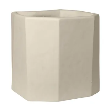 Staffa kruka från Ferm Living är tillverkad i fiberarmerad betong som kombinerar låg vikt med hög tålighet. Betongkrukan har en vinklad och oregelbunden yta inspirerad av geometriska bergsformationer som ger djup och karaktär. Dräneringshål i botten främjar friska rötter och gör planteringskrukan lämplig för både inom- och utomhusbruk. Den arkitektoniska formen lyfter gröna växter, små träd och kryddor i fönster, på altan eller i trädgård. En skulptural blomkruka som förenar funktion och modern design.