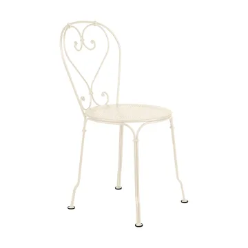 1900 stol från Fermob är en elegant metallstol med klassiskt fransk karaktär och mjuka linjer som för tankarna till sekelskiftets charmiga trädgårdskaféer. Den romantiska silhuetten med sina handgjorda ornament och sirligt böjda detaljer vittnar om ett tidlöst hantverk där varje linje bär spår av tradition och precision. Ytan är skyddad med modern lackeringsteknik som motstår både UV-blekning och rost, vilket gör stolen lika vacker år efter år – oavsett om den står på terrassen, i växthuset eller kring ett litet cafébord i trädgården. Sitsens perforerade mönster skapar en luftig känsla och låter ljuset spela genom stålet på ett sätt som förstärker seriens poetiska uttryck. 1900 stol från Fermob blir en naturlig del av den franska trädgårdstraditionen, skapad för att förena skönhet, hållbarhet och en stillsam känsla av tidlös elegans i varje utomhusmiljö.
