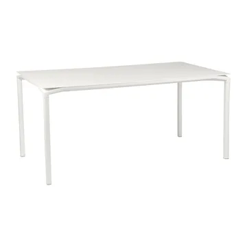 Calvi bord lågt 160x80 cm från Fermob är ett rektangulärt trädgårdsbord som trots sin lilla storlek ändå kan få plats med stolar för sex personer. Det pulverlackerade bordet av aluminium har en uv-beständig färg och justerbara möbeltassar vilket gör det enkelt att få bordet stadigt på ojämna underlag. Trots den robusta kvalitén på bordsskivan så gör designen att den ser ut att sväva ovanpå ramen. En snygg detalj som ger bordet en modern känsla.