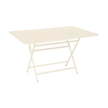 Caractere bord 128x90 cm från Fermob är ett rektangulärt och flexibelt utomhusbord som kombinerar generös bordsyta med smidig hantering. Bordet har plats för upp till sex personer och är tillverkat med en bordsskiva i stålplåt och ett underrede i stålrör, kompletterat med en aluminiumram under skivan för extra stabilitet. Den fällbara konstruktionen gör bordet enkelt att använda i vardagen och lätt att förvara när det inte behövs, samtidigt som ett integrerat handtag gör det smidigt att flytta. Den centrala benställningen ger gott om benutrymme runt bordet och en stabil känsla i användning. Ett praktiskt och tåligt bord för uteplats, terrass eller trädgård.