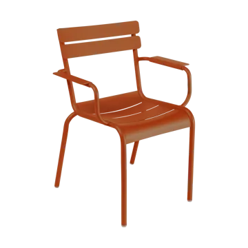 Luxembourg karmstol från Fermob är en skön och välformgiven utemöbel från Luxembourg-serien, formgiven av Frederic Sofia. Karmstolen har en bekväm sits och låg rygg som inbjuder till långa stunder på balkongen eller i trädgården, och den stapelbara konstruktionen gör den lätt att förvara när säsongen är över. Med tydlig fransk designkänsla blir stolen en pigg och pålitlig del av din uteplats — praktisk, hållbar och lättplacerad för både avslappning och sociala stunder.