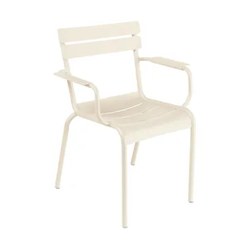 Luxembourg karmstol från Fermob är en skön och välformgiven utemöbel från Luxembourg-serien, formgiven av Frederic Sofia. Karmstolen har en bekväm sits och låg rygg som inbjuder till långa stunder på balkongen eller i trädgården, och den stapelbara konstruktionen gör den lätt att förvara när säsongen är över. Med tydlig fransk designkänsla blir stolen en pigg och pålitlig del av din uteplats — praktisk, hållbar och lättplacerad för både avslappning och sociala stunder.