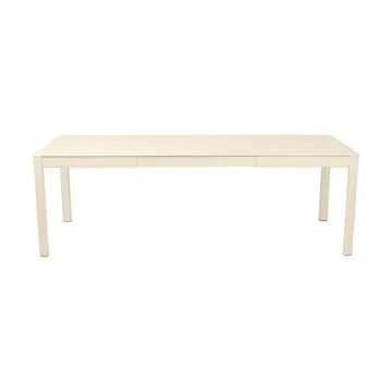 Ribambelle L bord från Fermob är ett flexibelt matbord skapat för gemenskap och måltider under bar himmel. Den rena, moderna formen framhäver aluminiumets lätthet och styrka, medan den innovativa konstruktionen rymmer två förlängningsskivor som förvaras under bordsskivan och hålls helt utom synhåll. Teleskopsystemet gör det enkelt att anpassa bordets längd efter sällskap och tillfälle, utan att störa helhetens harmoniska linjer. Materialet är väderbeständigt och behandlat med UV-skyddande pulverlack som bevarar både färg och yta säsong efter säsong. Kombinationen av funktion, kvalitet och enkelhet gör möbeln till en naturlig samlingspunkt i trädgården eller på terrassen. Ribambelle L bord från Fermob är ett exempel på hur smart teknik och tidlös fransk design kan mötas i en form som både förenklar och förskönar livet utomhus.