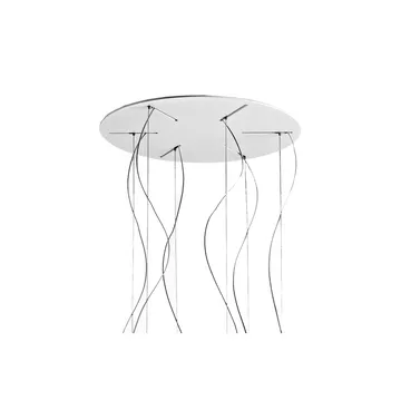 Multiple takplatta för pendlar från Foscarini är en takanordning i stål med smarta skåror för kabelgenomföring som håller flera pendlar prydligt på plats. Den rena, geometriska formen skapar en diskret men tydlig takdetalj och underlättar installation och kabeldragning för kluster av hängande lampor. Passar perfekt över matbordet eller i hallen där flera pendlar ger både ljus och karaktär. En praktisk och elegant lösning för att samla och organisera dina pendlar i taket.