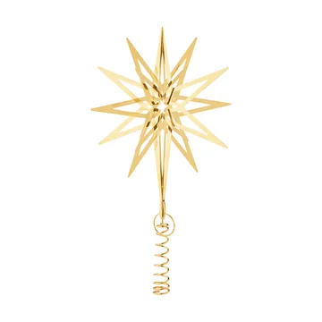 Lyra julgransstjärna 2025 från Georg Jensen är en gnistrande avslutning på julgranen. Tillverkad i rostfritt stål och pläterad med 18 karat gult guld, sitter den stadigt med sitt spiralfäste eller kan hängas upp med den medföljande ringen. Ett tidlöst smycke till varje julfirande.
