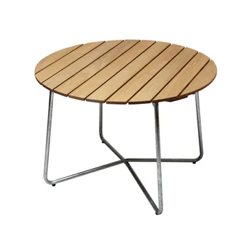 9A matbord från Grythyttan Stålmöbler är ett runt bord formgivet av Artur Lindqvist och en del av Klassiker-serien. Bordet är tillverkat i slitstarkt stål och passar lika bra på altanen som i bersån, där det skapar en elegant och inbjudande plats för samvaro. Den robusta konstruktionen ger lång hållbarhet, samtidigt som den stilrena designen harmonierar med olika utemöbler, exempelvis A2 eller Stol 1. 9A matbord kombinerar traditionellt svenskt hantverk med modern funktion och är perfekt för både avkopplande stunder och trevliga middagar utomhus.