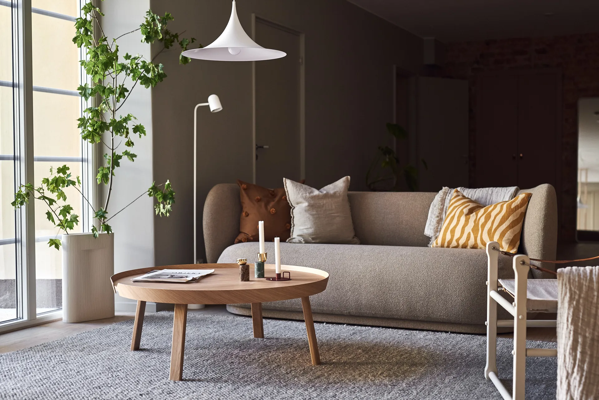 Semi pendel Ø47 cm från Gubi är en klassisk taklampa som fått flera utmärkelser sedan den formgavs 1968. Den karaktäristiska konformade metallskärmen riktar ljuset nedåt och skärmens vitlackerade insida hjälper till att sprida ljuset effektivt. Detta gör Gubi Semi pendel till en ypperlig lampa att hänga över köksbordet, matsalsbordet eller köksön. Som en reaktion på de mjuka organiska former som dominerade dansk inredning under slutet av 60-talet ville formgivarna Claus Bonderup och Torsten Thorup skapa en lampa med distinkta rena linjer och en geometrisk form. Resultatet blev Semi pendel som är baserad på två kvartscirklar som är placerade rygg mot rygg. Framgångarna lät inte vänta på sig. Duon Bonderup och Thorup vann första pris vid Kunstakademiets Arkitektskole för sin Semi pendel, som dessutom blev 80-talets bäst säljande danska designföremål. Sedan dess har Semi pendellampa blivit hyllad internationellt och har nu ikonisk status. Semi pendellampa är lika fin solitär som i grupp. Lys upp ett mörkt hörn genom att hänga flera Semi-pendellampor och kombinera olika storlekar och färger för ett levande uttryck.