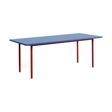 Two-Colour matbord 90x200 cm från HAY. Utforska en fängslande kombination av robusta stålrörsben och en bordsskiva i organiskt färgad Valchromat. Detta bord är en kärleksfullt designad hyllning till materialens skönhet av Muller Van Severen, som förenar kontraster och likheter i sina skapelser. Bordets enhetliga siluett och de djärva färgkomponenterna skapar ett uttryck som är både elegant och unikt. Med en dimension på 90x200 cm erbjuder detta bord ett utrymme för både intima och stora sammankomster.