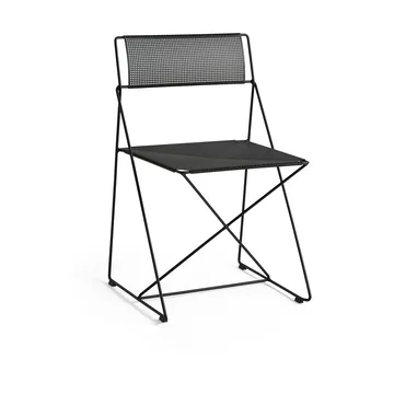 X-Line Indoor Outdoor stol från HAY är designad av Niels Jørgen Haugesen för att passa både inomhus och utomhus. Stolen, inspirerad av 1970-talets högteknologiska stil, har ett karakteristiskt X-mönster för styrka och flexibilitet. Dess hållbara och stapelbara egenskaper gör stolen till en mångsidig lösning i de flesta miljöer och sammanhang. Stolen är stapelbar upp till tio stolar och kombinerar både minimalism och funktionalitet.