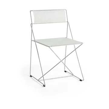 X-Line Indoor Outdoor stol från HAY är designad av Niels Jørgen Haugesen för att passa både inomhus och utomhus. Stolen, inspirerad av 1970-talets högteknologiska stil, har ett karakteristiskt X-mönster för styrka och flexibilitet. Dess hållbara och stapelbara egenskaper gör stolen till en mångsidig lösning i de flesta miljöer och sammanhang. Stolen är stapelbar upp till tio stolar och kombinerar både minimalism och funktionalitet.