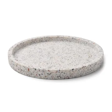 Humdakin Terrazzo rund bricka Ø20 cm blir en vacker detalj i såväl kök som badrum, men kan även fungera som ett dekorativt uppläggningsfat på matbordet. Den är stilren, klassisk och ger rummet en lyxig känsla. Terrazzo är en konststen som framställs av krossad marmor eller andra bergarter. Matcha gärna brickan med andra delar ur Humdakins serie Terrazzo för en enhetlig känsla.