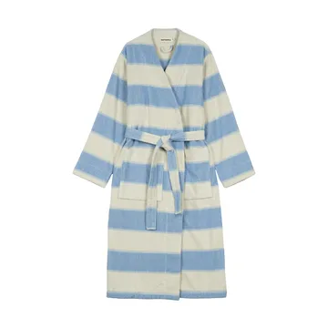Galleria badrock från Marimekko är en mjuk och generös morgonrock i kraftig frotté av 100 % ekologisk bomull som omsluter skönt efter dusch och bad. Det ikoniska Galleria-mönstret av Vuokko Eskolin-Nurmesniemi ger en tidlös grafisk karaktär. Badrocken har långa ärmar med breda uppvik, praktiska påsydda framfickor samt avtagbart skärp med hällor för flexibel passform. Den kraftiga kvaliteten ger hög absorptionsförmåga och en behaglig tyngd som känns lyxig i vardagen, perfekt för morgonrutiner eller lugna kvällar hemma.