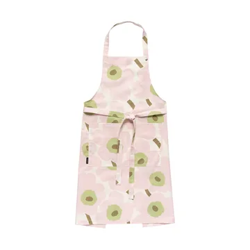 Pieni Unikko förkläde från finska Marimekko är tillverkat i bomull tryckt med Maija Isolas välkända blommönster. Förklädet blir ett vackert inslag i de allra flesta kök och passar nästan alla. På framsidan finns en ficka där du kan förvara recept, köksredskap eller andra småsaker. Matcha förklädet med fina köksattiraljer och andra härligt mönstrade textilier från Marimekko.