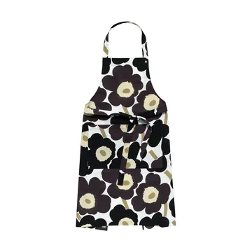 Pieni Unikko förkläde från finska Marimekko är tillverkat i bomull tryckt med Maija Isolas välkända blommönster. Förklädet blir ett vackert inslag i de allra flesta kök och passar nästan alla. På framsidan finns en ficka där du kan förvara recept, köksredskap eller andra småsaker. Matcha förklädet med fina köksattiraljer och andra härligt mönstrade textilier från Marimekko.
