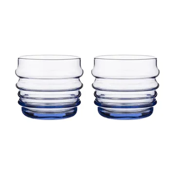 Sukat Makkaralla glas 2-pack från finska Marimekko är ett set om två glas i serien Sukat Makkaralla som är formgiven av Anu Penttinen som ville föra lekfullhet till de skandinaviska matborden. Sukat Makkaralla betyder ungefär ”nedhasade strumpor” på svenska och är munblåsta i en lika vacker som unik form som ger varje dukning en känsla av glädje.