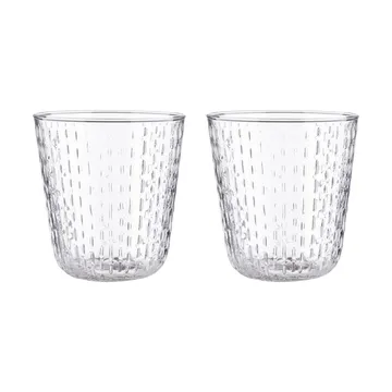 Syksy tumbler glas 36 cl 2-pack från Marimekko är handblåsta dricksglas med vackra reliefdetaljer designade av Matti Klenell. Varje glas är unikt och passar lika bra till vatten som juice eller vin. Tål diskmaskin och levereras i en fin presentförpackning – en stilfull detalj för hemmet eller som gåva.