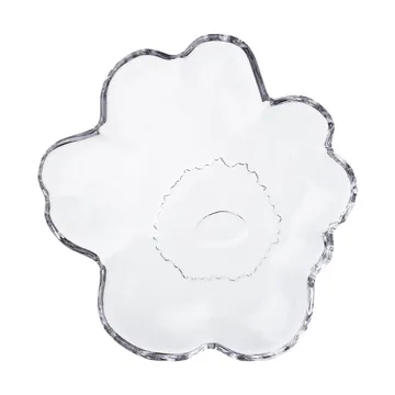 Unikko glastallrik från Marimekko är en liten assiett i klart glas formad som den ikoniska Unikko-blomman av Maija Isola. Den skulpturala kanten ger ett fint spel av ljus och gör tallriken perfekt för förrätter, små desserter eller smycken på nattduksbordet. Den kompakta diametern gör den enkel att duka med flera på rad eller stapla i köksskåpet. Glasets tyngd och transparens framhäver mönstrets form och ger ett elegant uttryck på frukostbrickan eller vid eftermiddagsfikat. Levereras i presentförpackning med Marimekko-logo. Handdisk rekommenderas.