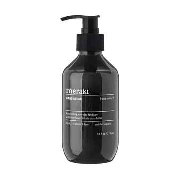 Meraki handlotion 275 ml är närande, återfuktande och mjukgörande för händerna tack vare sina kvalitativa ingredienser. Handkrämen kommer dessutom i en stilren förpackning med pump och blir därför ett dekorativt inslag på nattduksbordet eller bredvid tvålen på handfatet i badrummet. Den är ekologiskt certifierad och passar för daglig användning.