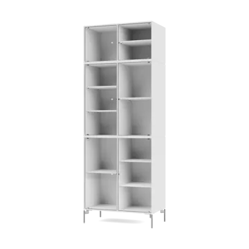 Ripple IV vitrinskåp 69,6x187,2x38 cm från Montana är tillverkat av MDF och glas med en lackerad finish. Detta stora vitrinskåp har sex dörrar av vågformat glas och är utrustat med sju flyttbara hyllplan, vilket gör det enkelt att anpassa förvaringen efter behov. Perfekt för förvaring av porslin i matsalen eller köket.