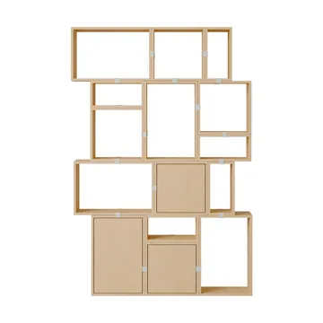 Stacked förvaringssystem bokhylla konfiguration 2 från Muuto är en färdigkomponerad bokhylla som kombinerar funktion och design på ett elegant sätt. Den erbjuder både öppna hyllor och modulutrymmen med ryggskiva, vilket ger plats för böcker, dekor och personliga favoriter. Denna konfiguration skapar ett modernt förvaringssystem som kan anpassas efter hemmets behov, och modulerna med ryggskiva kan enkelt monteras direkt på väggen för en stabil och stilren lösning. Stacked bokhylla konfiguration 2 ger flexibilitet, balans och estetiskt tilltalande ordning i hemmet samtidigt som den fungerar som en diskret men imponerande inredningsdetalj.
