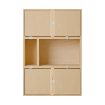 Stacked förvaringssystem sideboard konfiguration 4 från Muuto är en flexibel och funktionell möbel som kan anpassas efter hemmet och dina specifika förvaringsbehov. Den här konfigurationen kombinerar öppna och stängda moduler med ryggskiva, vilket ger både stilren förvaring och utrymme för att visa upp personliga föremål. Modulerna med ryggskiva kan enkelt monteras direkt på väggen för en stabil och elegant installation. Med Stacked sideboard konfiguration 4 får du en modern, visuell och praktisk förvaringslösning som smidigt integreras i hemmets alla rum.