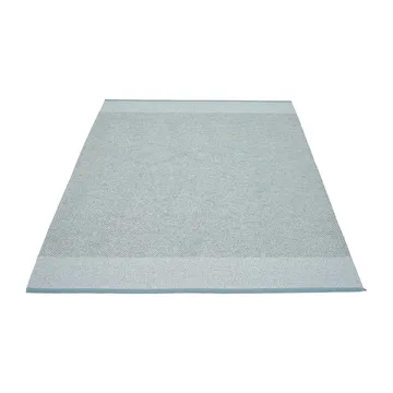 Edit plastmatta 180x260 cm från svenska Pappelina är tillverkad av ftalatfri plast med en insydd logotyp på ena sidan. Den stora mattan passar lika bra i hallen som på altanen då den är både en inomhus- och utomhusmatta.