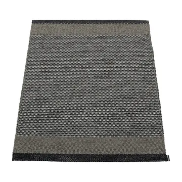 Edit plastmatta 60x85 cm från svenska Pappelina är tillverkad av ftalatfri plast med en insydd logotyp på ena sidan. Den lilla mattan passar lika bra i hallen som på den lilla balkongen då den är både en inomhus- och utomhusmatta.