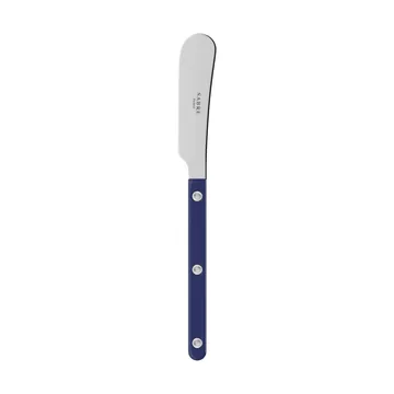 Bistrot solid smörkniv från SABRE Paris är ett charmigt tillskott till frukostbordet och helgens brunch. Den rundade, oskarpa bladformen gör det enkelt att breda smör, färskost, tapenade och röra på bröd och toast utan att riva ytan. Smörkniven har klassiska nitdetaljer som för tankarna till franska bistroer och en välbalanserad handkänsla som ligger skönt i handen. En tålig vardagsfavorit som lyfter dukningen och kompletterar övriga delar i Bistrot.