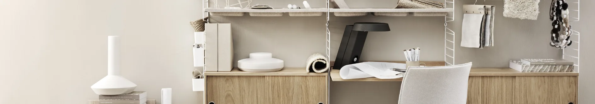 Om du behöver förnya ditt hemmakontor har String kombinationer som passar alla behov. Oavsett om du ska ha en bokhylla för att fylla med pärmar och böcker eller en arbetsplats. Deras imponerande fokus på detaljer gör att t.ex. fällbordet även kan förvandlas till ett bord för den som inte har så mycket plats.