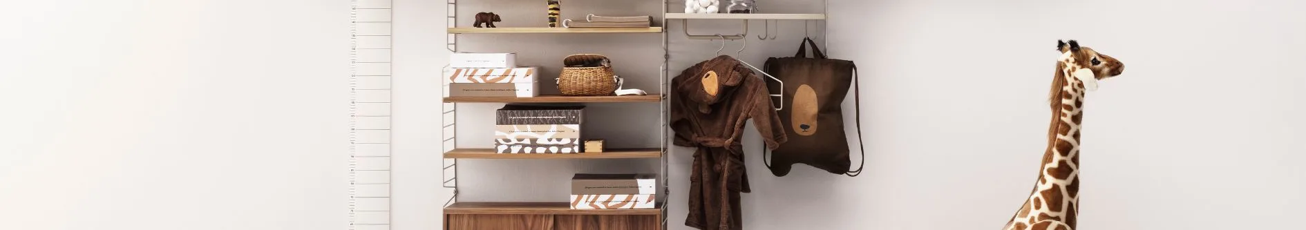 Med skandinavisk och tidlös design från String kan du ändra och justera förvaringen allt eftersom ditt barn växer. Genom att bara lägga till en vägg- eller golvgavel och ett par hyllplan till din befintliga stringhylla har du med små medel skapat mer förvaring. Trots att vi inte kan förhindra att leksaker och böcker ofta hamnar på golvet i ett barnrum kan vi åtminstone skapa plats för alla saker i stringhyllan. En annan anledning till att inreda med String i ditt barns rum är det faktum att de kan ta med sig hyllkombinationen när de flyttar hemifrån. En Stringhylla är med andra ord det sista ditt barn växer ur.