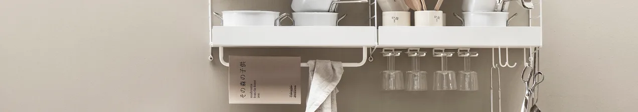 Oavsett hur höga matlagningsambitioner du har så förtjänar alla funktionella köksmöbler med smarta och flexibla förvaringslösningar. Med kökshyllor från String får du precis all den hjälp du behöver i köket. Du hittar massor av inspirerande kökslösningar perfekt för ett pentry eller kokvrå till kökslösningar som är anpassade för ett större utrymme. Hemligheten när vi skapar nya kökshyllor är accessoarer. De genialiska, till synes små, accessoarerna ökar förvaringsutrymmet markant och ger stringhyllan karaktär och personlighet.