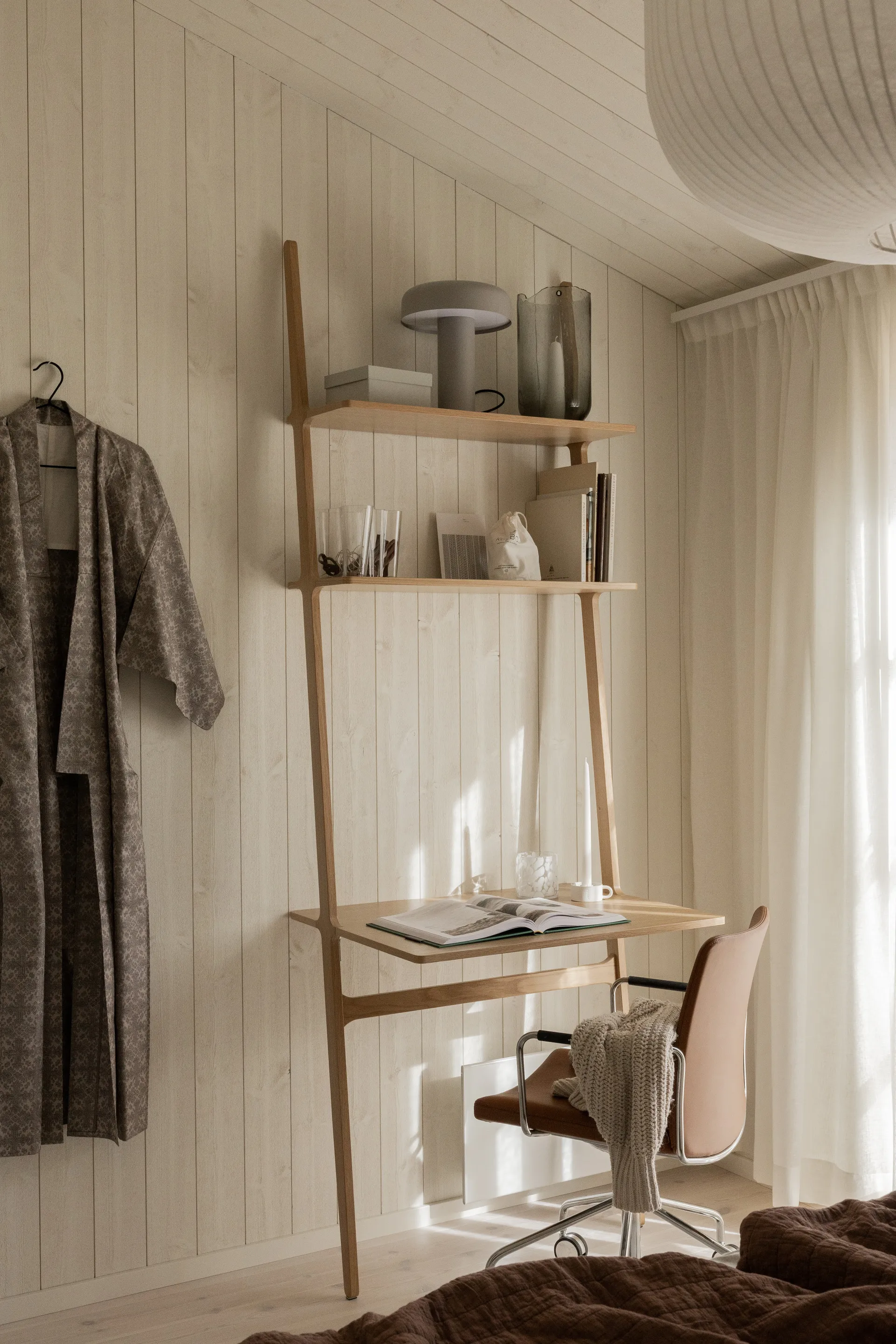 Libri skrivbord från Swedese är ett elegant och innovativt skrivbord formgivet av Michaël Bihain. Designen följer samma princip som den klassiska steghyllan och kombinerar lätthet med funktionell förvaring. De två hyllplanen ovanför arbetsytan ger plats åt böcker, dokument och personliga detaljer som gör skrivplatsen levande. Formen är luftig men stabil, och konstruktionen speglar Swedeses känsla för material och precision. Libri skrivbord från Swedese kan med fördel kombineras med Libri-hyllor för att skapa en sammanhållen och flexibel kontorsmiljö i skandinavisk stil.