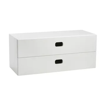 TÔNN lådhurts stor från TÔNN är en praktisk och stilren förvaringslösning till hyllsystemet Portal. Med generösa lådor får du gott om plats att organisera vardagens saker på ett enkelt och snyggt sätt. Lådhurtsen kan placeras mellan två hyllplan eller monteras på väggen för en flexibel användning som passar olika behov i hemmet. Tillverkad i hållbara material och med en tidlös design blir den ett naturligt komplement till din inredning – perfekt när du vill kombinera dold förvaring med en genomtänkt estetik.